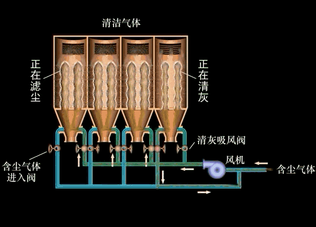 布袋除尘器核心工作原理动图展示: